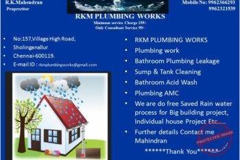 Sponsored By: Business Description Rkm Plumbing Works Sholinganallur Chennai, providing top-quality plumbing solutions for residential, co